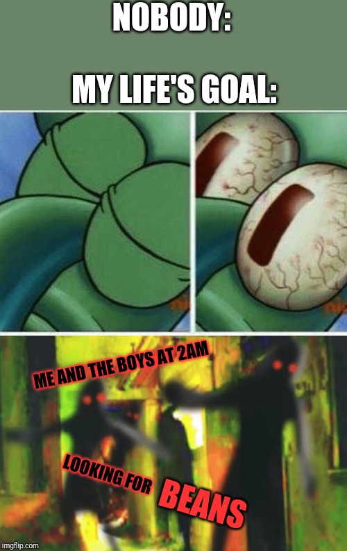 , me and the boys at 2AM lookin for BEANS i do not own the video i displayed all rights go to owner me and the boys at 2AM lookin . "Me and the boys at 2am looking for BEANS for 10 minutes", Go check out the original creator circletoons HD Shout out to the person who jokingly suggested this on a 3 sec video of beans . If you're searching for Meme Generator Me And The Boys At 2Am Looking For Beans topic, Me and the boys Memes, Me and the boys Memes HELLO GUYS HERE IS ANOTHER MEME COMPILATION FOR YOU GUYS THIS TIME ITS ABOUT Me . you have visit the ideal page. Our website always gives you hints for seeing the highest quality picture content, please kindly hunt and locate more enlightening articles and images that fit your interests.